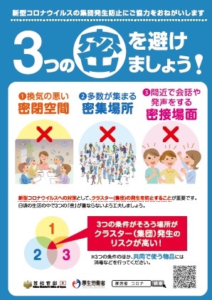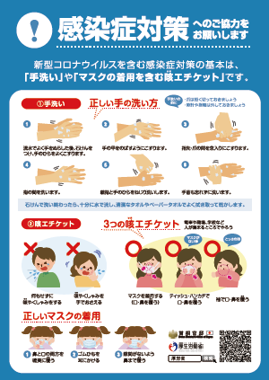 新型コロナウイルス感染症に関連する政府の取り組み情報より、感染症対策に関するチラシを参考として掲載させていただきますので、ご覧ください。