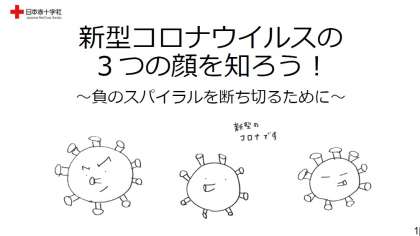 私からは、皆さんへ日本赤十字社のホームページに掲載されている「新型コロナウイルスの3つの顔を知ろう!〜負のスパイラルを断ち切るために〜」という記事を紹介します。