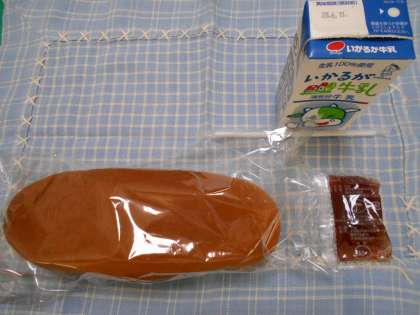本日の献立は、コッペパン、いちごジャム、牛乳です。