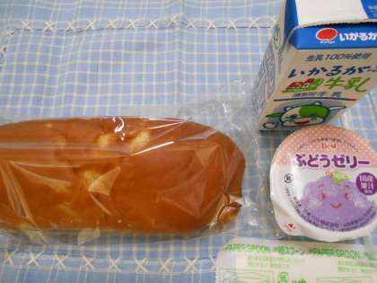 本日の献立は、おさつパン、牛乳、そして、ぶどうゼリーです。