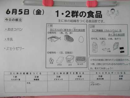 主に体の組織をつくる、食品群(1群と2群)を紹介していますので、是非ご覧ください。