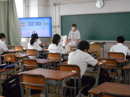 6月の上旬にもかかわらず、日差しの強い日が続いています。分散登校も、7日目を迎えていますが、生徒たちの元気な様子に併せて、日常の学校生活が着実に戻りつつあります。引き続いて、各学年の教科授業の様子を掲載させていただきます。