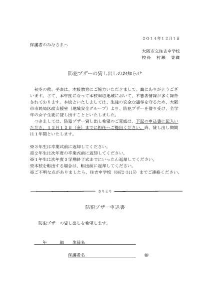 つきましては、防犯ブザー貸し出し