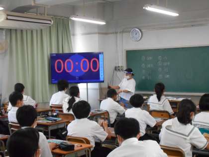 <写真上>1年1組(英語)