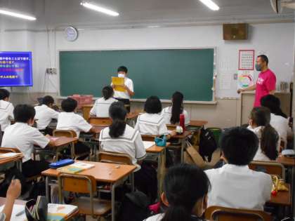 <写真上>1年1組(国語:生徒たちの発表)