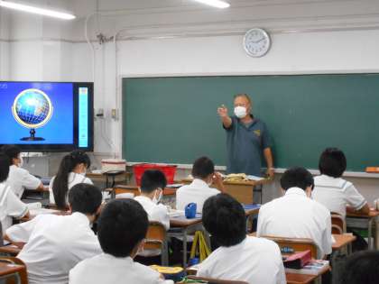 <写真下>1年3組(社会:経度と緯度の学習)