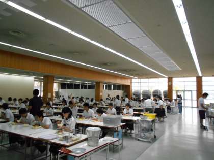 (写真は、昼食ホールでの2年生の給食の様子です。)