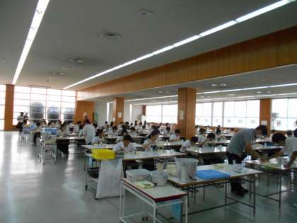 (写真は、昼食ホールでの1年生の給食の様子です。)