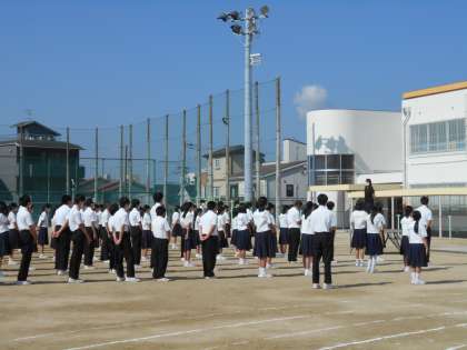 2年生の学年集会を下グラウンドで行いました。3組担任の辰巳先生より、日常生活でも気にかけてほしい「言葉」の扱いについてお話がありました。