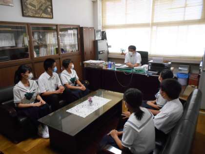 本日、前期の生徒専門委員会が行われました。校長室では、生徒会役員のメンバーと「より良い住吉中学校」を共につくりあげていくための意見交換を行い、生徒会役員の決意を聞かせてもらいました。以下の内容は、お話を聞かせてもらった内容の抜粋です。誰もが、しっかりとした考えを持っていて、心強く感じました。