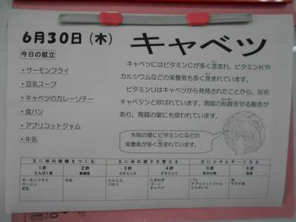 本日の給食で登場したキャベツのカレーソテーに使われているキャベツは、ビタミンCがたくさん含まれており、食卓でも様々なメニューで使われている栄養たっぷりの野菜です。