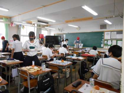 (写真は、3年生3組の給食の様子です。)