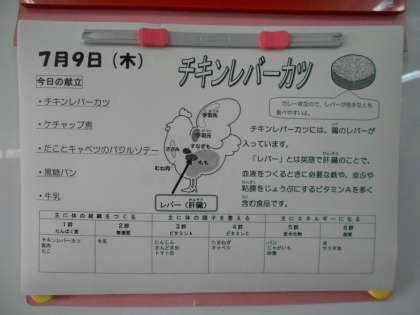 本日の献立「チキンレバーカツ」には、鶏のレバーが入っていて、鉄分やビタミンAをたくさん含んだ食品です。