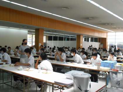 (写真は、昼食ホールでの2年生の給食の様子です。)