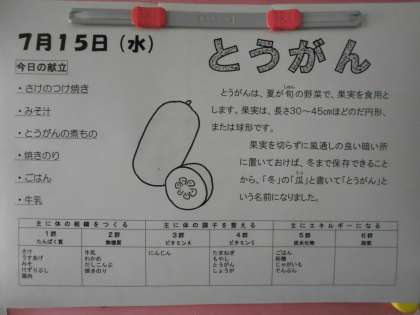 本日の献立に登場した「冬瓜(とうがん)」は、夏が旬の野菜であり、果実を食用としています。