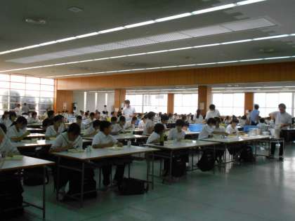 (写真は、昼食ホールでの1・2年生の給食の様子です。)
