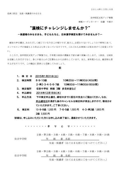 3. 検定場所 住吉中学校 南館 3階 多目的室など
