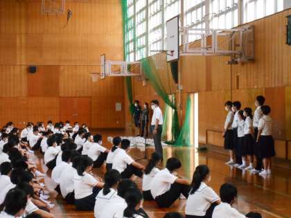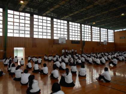 1学期も後2週間となりました。本日は、体育館で全校集会を行いました。先週末にはアメリカのメジャーリーグも開幕し、日本人選手の活躍が期待されているところです。また、NBAも開幕に向け、練習試合がスタートしたそうです。全校集会では、2011年の夏の甲子園に出場した花巻東高校が掲げたスローガンでもあった「勝利の女神は些事(さじ)にあり」についての話をしました。日常生活での当たり前であることを大切にこして、学校生活を過ごしてもらいたいと思います。校長室だより・羅針盤第13号に、小さなことをおろそかにはしないこと、「勝利の女神は些事(さじ)にあり」について掲載していますので、是非ご覧ください。