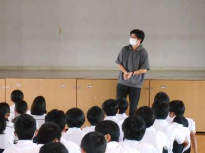 3年生の学年集会を講堂で行いました。玉越先生からは、質の良い睡眠と健康的な生活習慣についてのお話がありました。