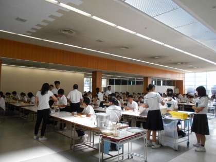 (写真は、昼食ホールの2年生の給食の様子です。)