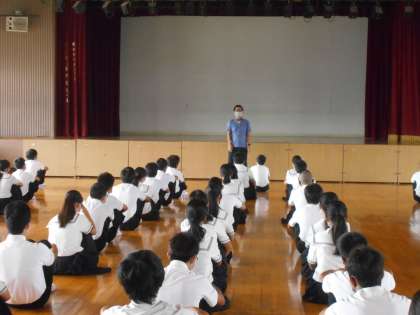 2年生の学年集会を講堂で行いました。池永先生から「出会いや人との関りを通じて見聞をひろげること」についてのお話がありました。