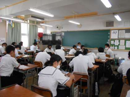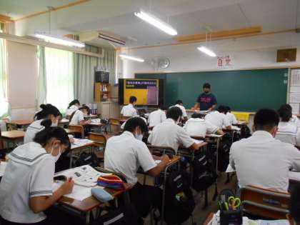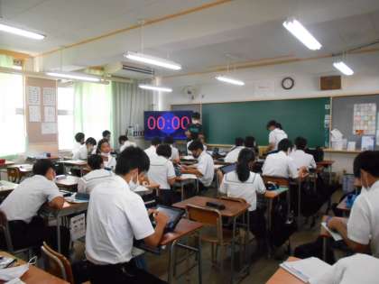 3年1組の英語の授業では、タブレットを使って学習を行いました。