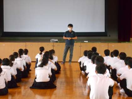 3年生の学年集会を講堂で行いました。山下先生から、「修学旅行実行委員会の取り組み」と「お互いに協力していくことの意義」についてのお話がありました。