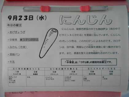 本日の給食【9月23日(水)】