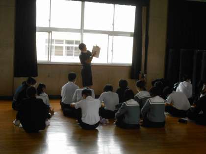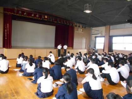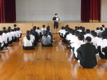 明日出発することとなる、3年生の修学旅行の事前指導を、4限目に講堂で行いました。
