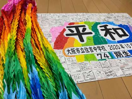 修学旅行実行委員会の平和セレモニー係の生徒たちが中心となって、平和への思いをめぐらせながら、千羽鶴とメッセージボードをつくりました。