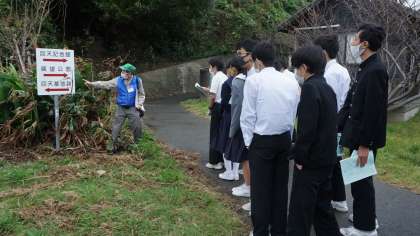 ガイドさんの案内による大津島の説明や記念館の館内の見学と訓練基地の見学を行いました。