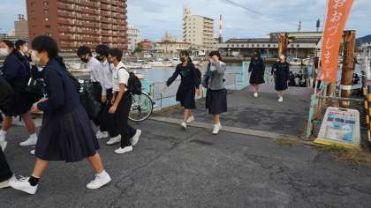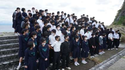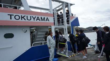 平和セレモニーを終えて、学年全体の集合写真とクラス写真を撮り終えて、馬島港に移動しました。