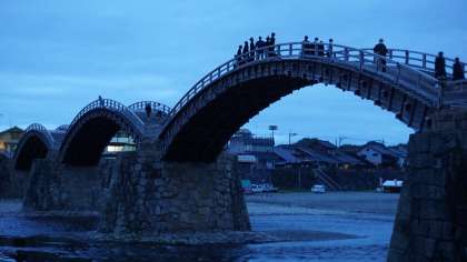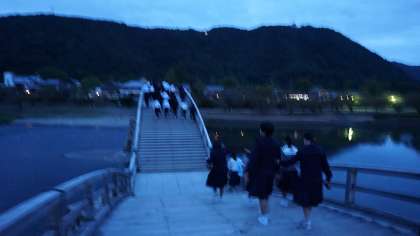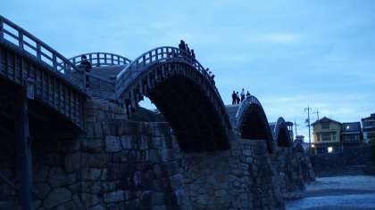 早起きをして参加を希望した子どもたちと一緒に、ホテルのすぐ前にある錦帯橋に散策に出かけました。