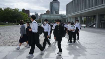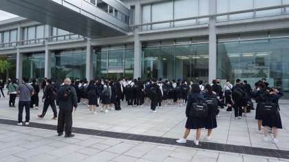 平和資料館に入館する前に、学年全体の写真撮影です。
