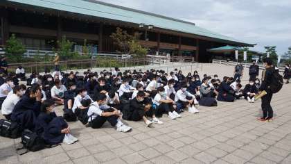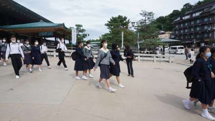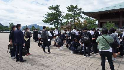 各学級ごとに、クラス写真を撮ってから、宮島をグループごとに散策します。