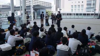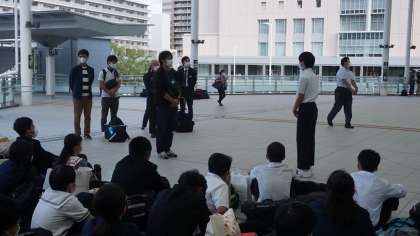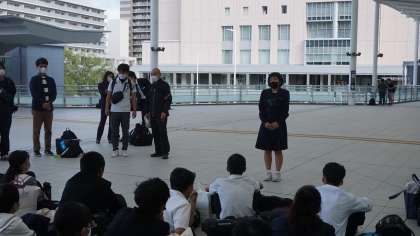 カメラマンさんとは新大阪駅でお別れするので、広島駅で3日間お世話になったお礼を、実行委員の田井さんが司会をして、日野くんが伝えました。