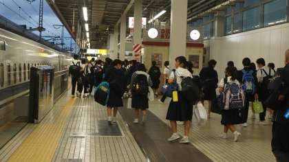 バスは、17:40過ぎに、新大阪駅を出発しました。道路が渋滞していなければ、18:30過ぎには、遅くても19:00までには学校に戻れる予定です。