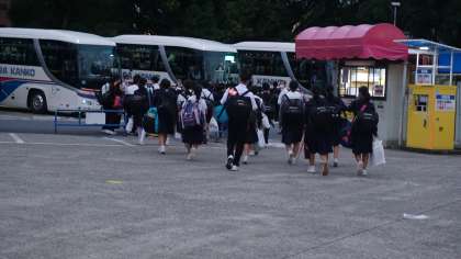 クラスごとに2台のバスに分乗して、学校へと戻ります。