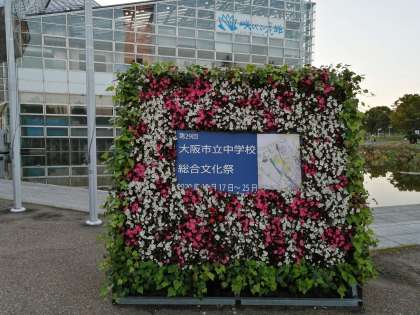 先週末の10月17日(土)、18日(日)に、鶴見区民センターと咲くやこの花館を会場として、大阪市立中学校文化祭が行われました。コロナ禍の影響により、吹奏楽部や合唱部による音楽会や演劇部の舞台発表、また、茶道のお点前などが中止となりましたが、筝合奏やプロジェクションマッピング、理科部、社会科部、華道部などの展示発表などが行われました。