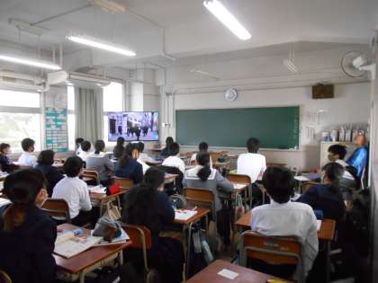 〈写真下〉1年3組(社会)