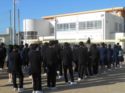 2年生の学年集会を下グラウンドで行いました。高山先生より、文化祭を振り返ってみて、舞台発表では思わぬハプニングがおこったりするが、いろいろな場面を想定しながら行動することが何よりも大切であるとお話がありました。