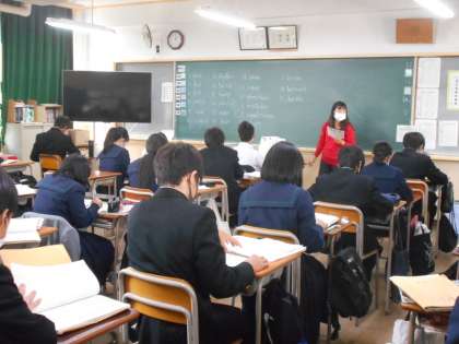 〈写真中〉2年2組(英語)
