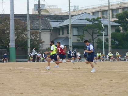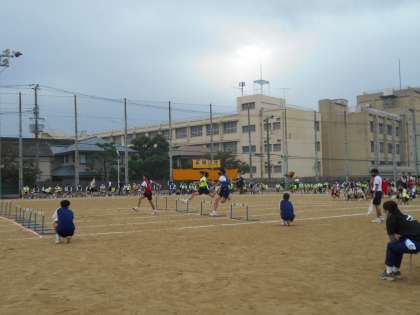 全体競技のラジオ体操の後は、60mハードル走、60m走と続きます。