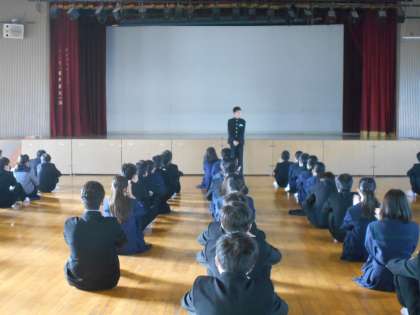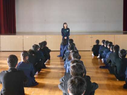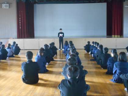 2年生の学年集会を講堂で行いました。学年代表の選出のため、演説会を行い、立候補者からの所信表明がありました。