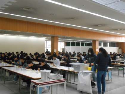 (写真は、昼食ホールでの2年生の給食の様子です。)