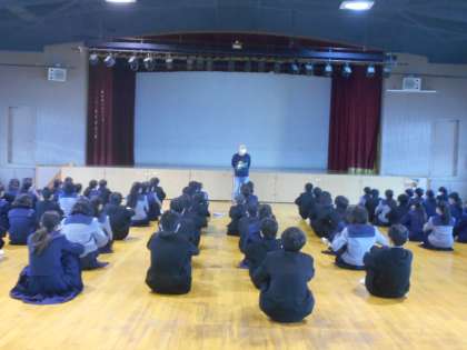 1年生の学年集会を講堂で行いました。吉田先生から、3年生はいよいよ卒業まで残すところ1か月余りとなり、1年生の君たちにも中学校卒業後の進路を考える機会を是非もってもらいたいというお話がありました。
