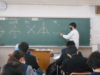 1限目に、1年1組で、左海先生の数学科の研究授業を実施しました。