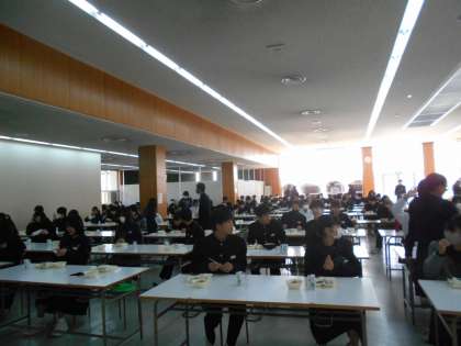(写真は、昼食ホールでの2年生の給食の様子です。)