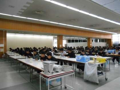 (写真は、昼食ホールでの2年生の給食の様子です。)