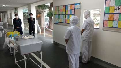 「卒業お祝い献立」の本日、3年生の代表生徒がお礼の言葉を伝えるとともに、最後に教室から全員で「ありがとうございました!」と感謝の気持ちを伝えました。